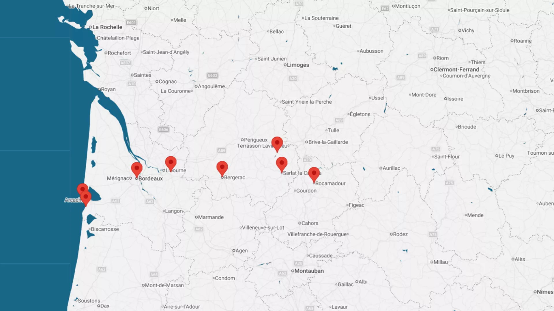 Bergerac to Montignac to Sarlat area: 2–2.5 hours (approximately 140–160 km)